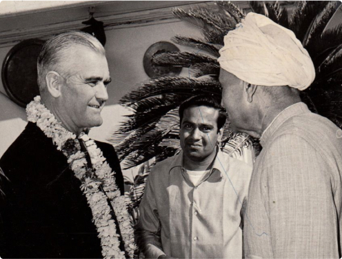 General William Westmoreland, Commander-in-Chief of U.S. Army forces during the Vietnam War, makes a special trip to the Surana showroom in Jaipur with his wife. General Westmorland becomes another esteemed international patron of the House.
